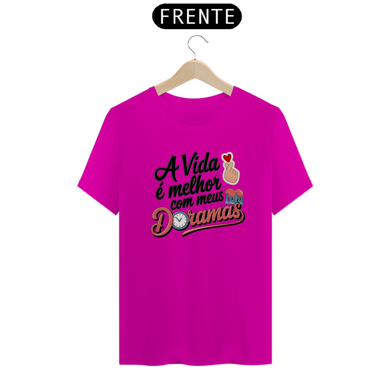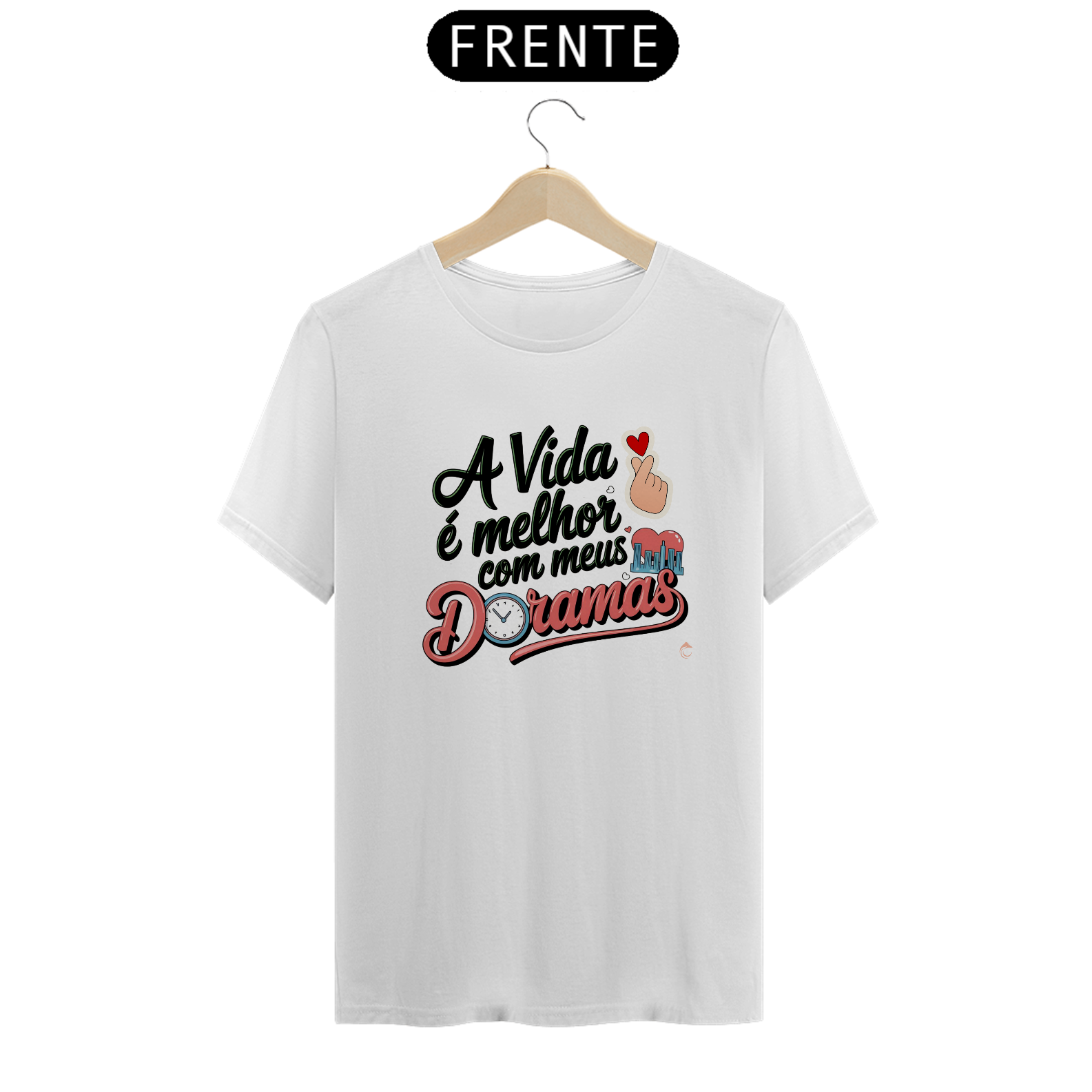 Nada como um bom dorama para transformar a rotina em algo especial! A camisa "A Vida É Melhor Com Meus Doramas" é um lembrete de como essas histórias repletas de emoção, reviravoltas e personagens inesquecíveis enriquecem nossos dias. Com detalhes encantadores como o "finger heart", o relógio e a cidade, a estampa é uma celebração visual do amor pelos dramas asiáticos, trazendo à tona toda a magia e inspiração que eles nos proporcionam. É a escolha perfeita para quem vive com o coração na próxima cena e os olhos brilhando a cada episódio.
