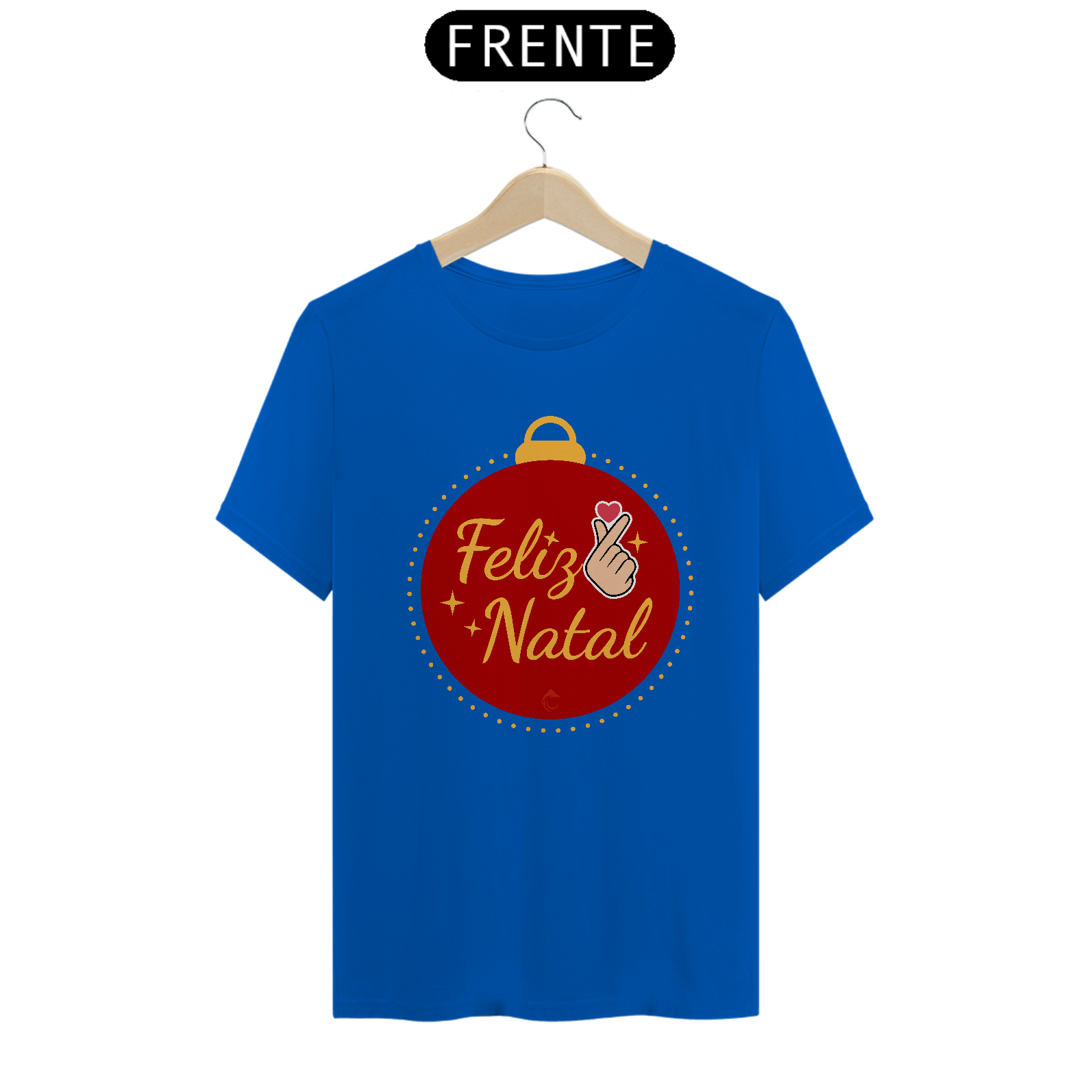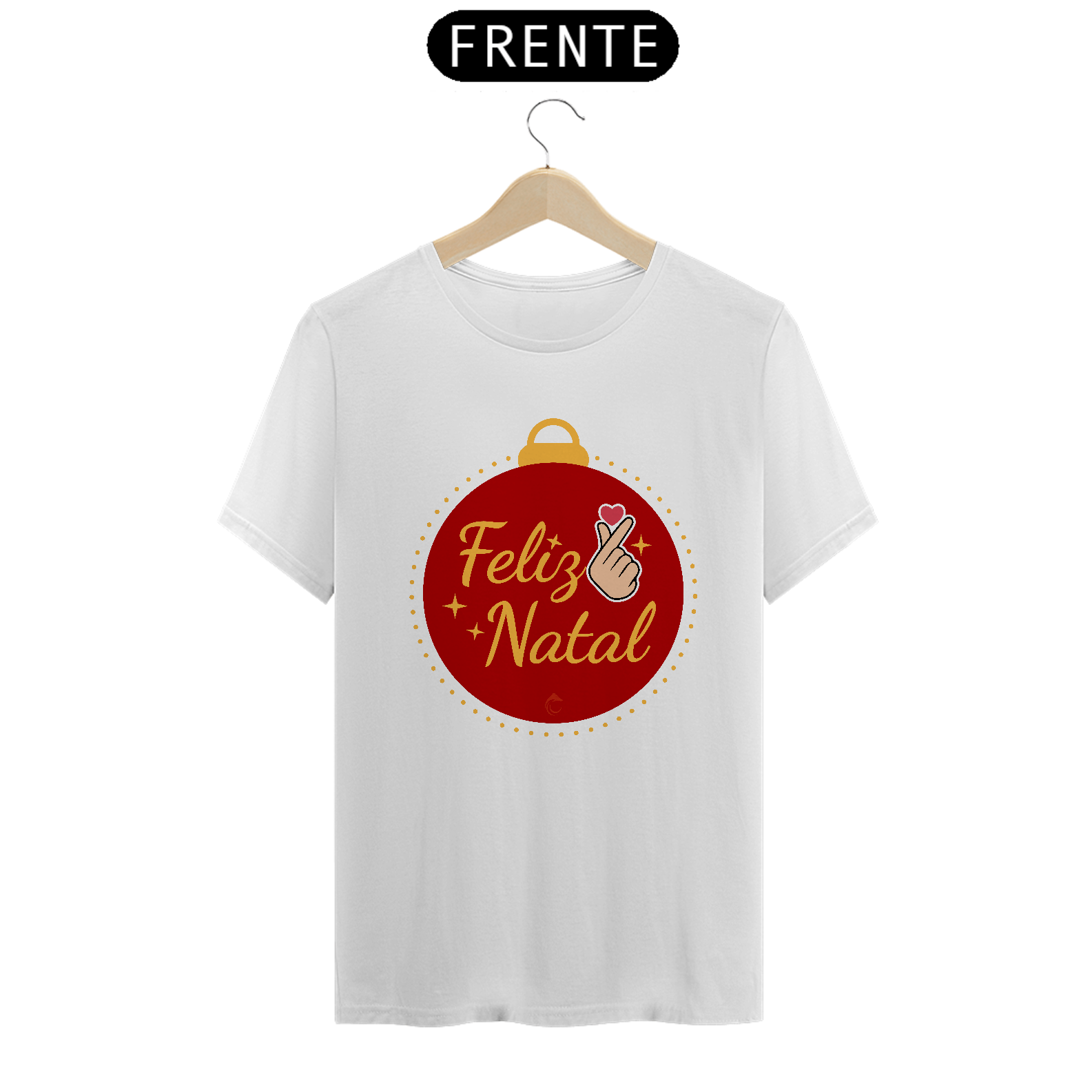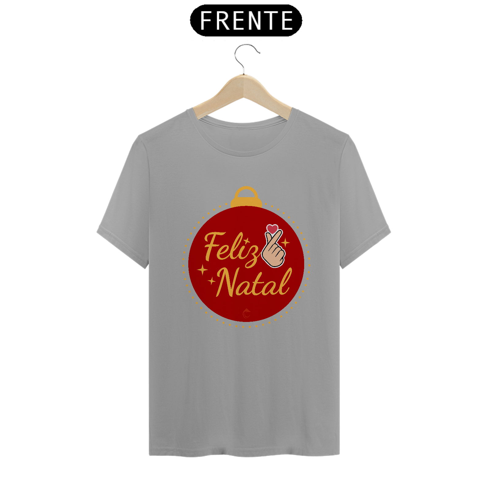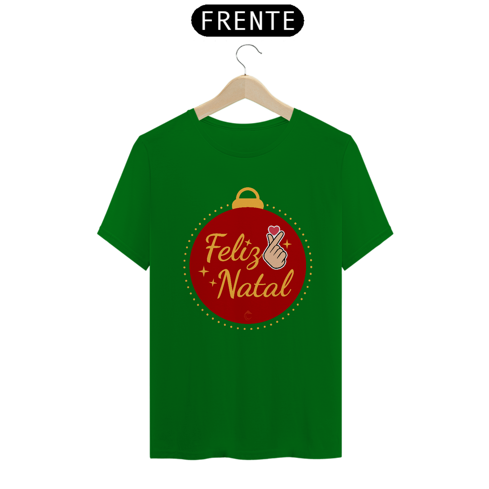 Espalhe a alegria natalina com a camisa "Feliz Natal Coreano", que traz um design vibrante e acolhedor! A estampa apresenta uma bola de Natal com o gesto finger heart em destaque, representando amor e carinho, e a mensagem "Feliz Natal" escrita em uma fonte elegante e festiva.
